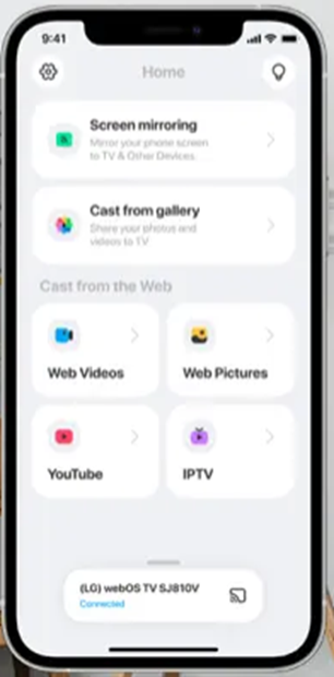 - Para transmitir desde tu celular a la TV, simplemente toca “Screen Mirroring” y selecciona tu TV. Así se establecerá la conexión entre ambos dispositivos.